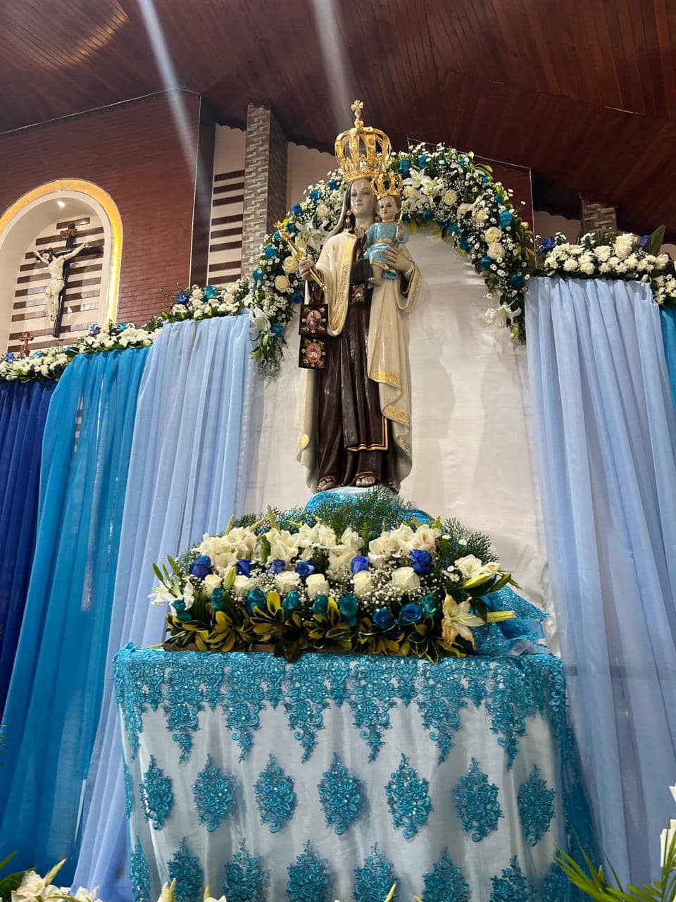 Al final de la Eucaristía se realizó la procesión con la bella imagen de la Virgen del Carmen por las principales calles de la Parroquia.