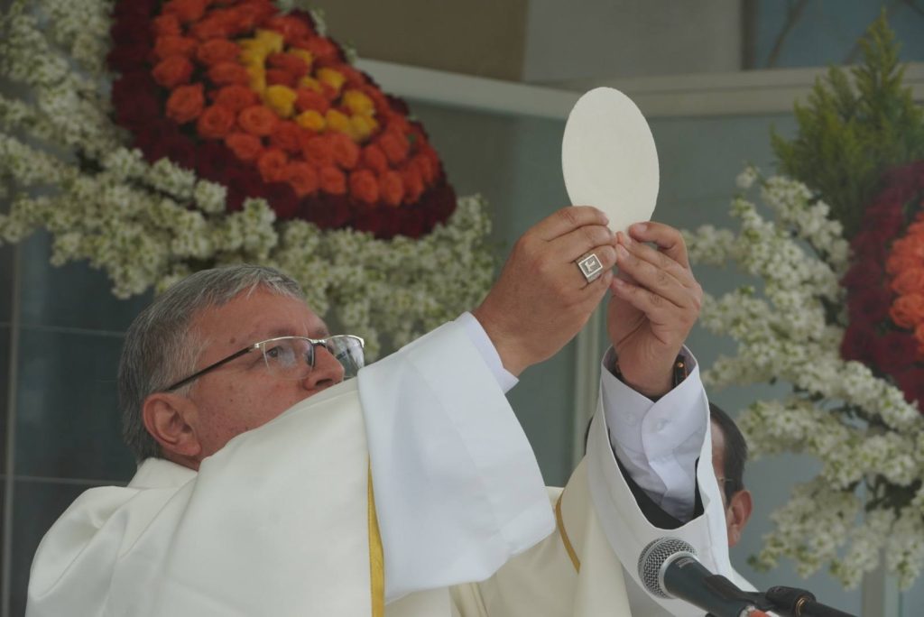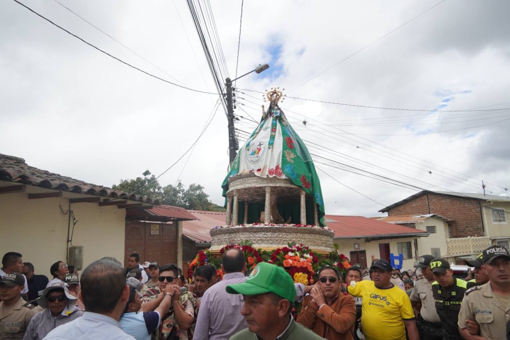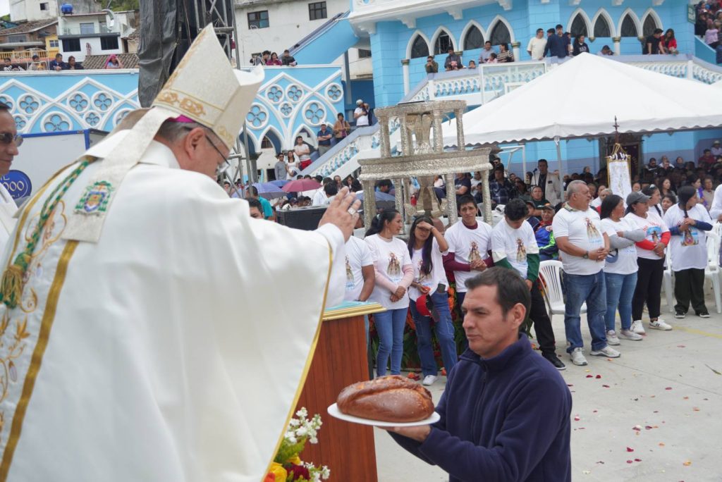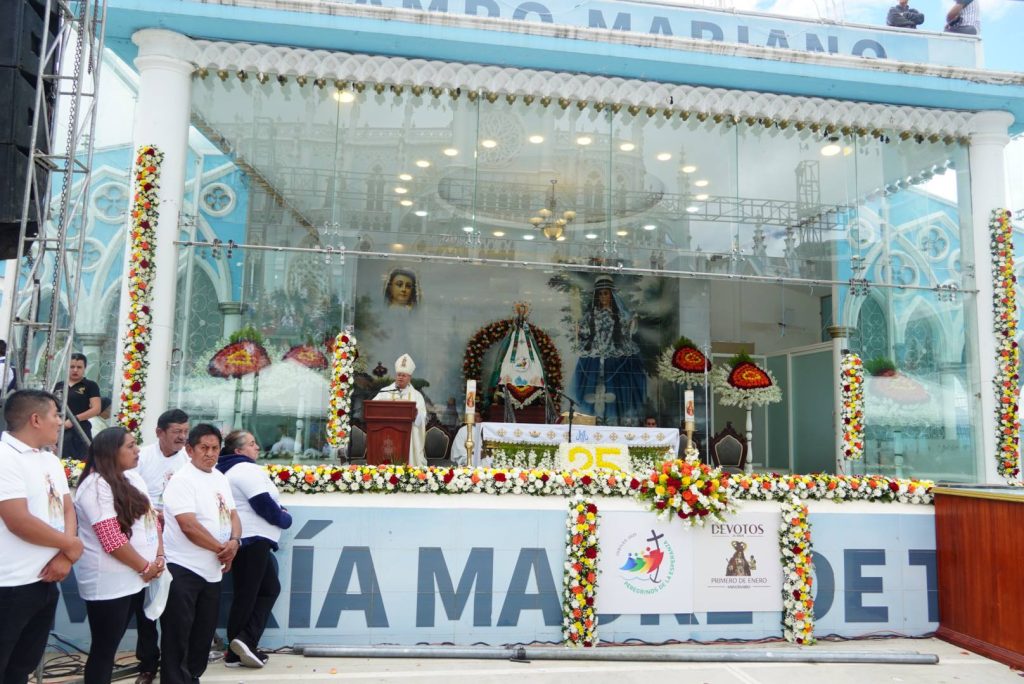 La Santa Misa fue presidida por Monseñor Walter Heras, Obispo de la Diócesis de Loja, luego de que, desde tempranas horas de la mañana, la Sagrada Imagen iniciara una peregrinación desde el sector Agua del Milagro, en el marco de los veinticinco años de esta significativa celebración cada primero de enero.