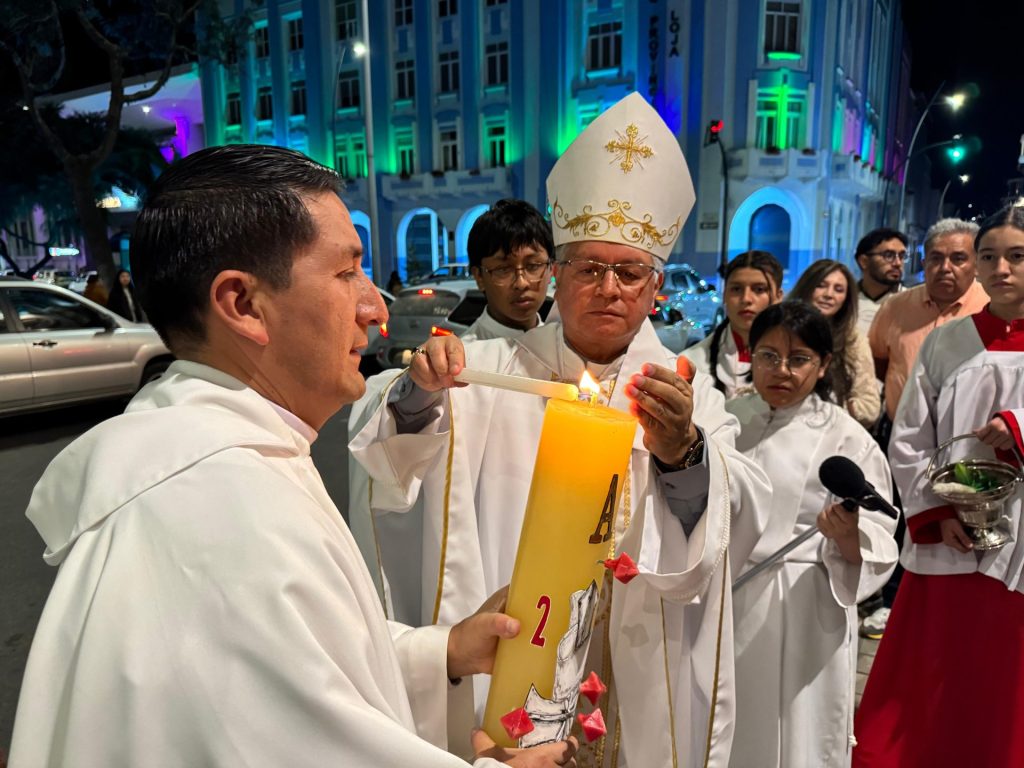 Que Cristo resucitado nos conceda su luz. Que este cirio pascual sea signo vivo de esa luz que disipa toda tiniebla.
