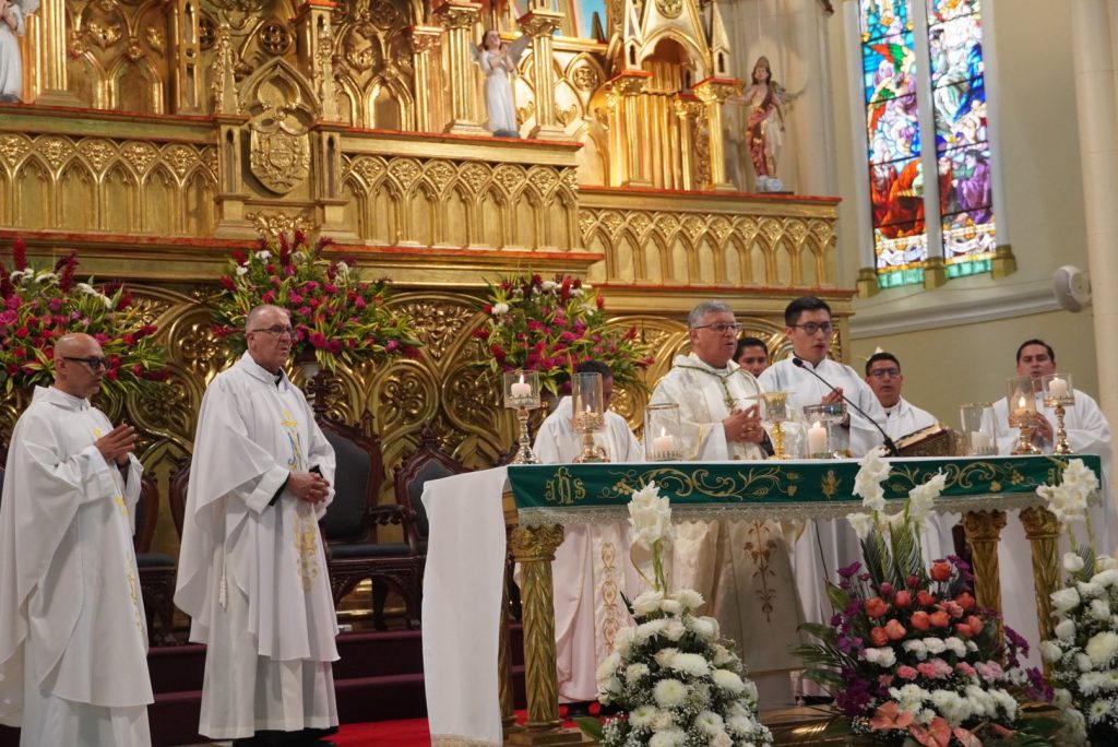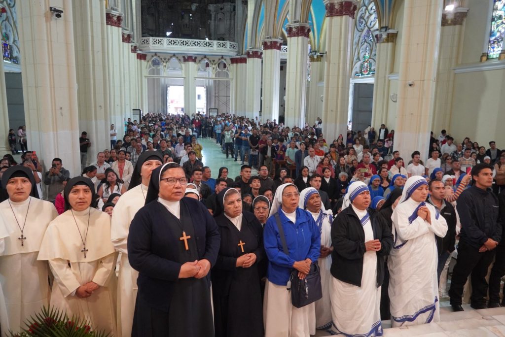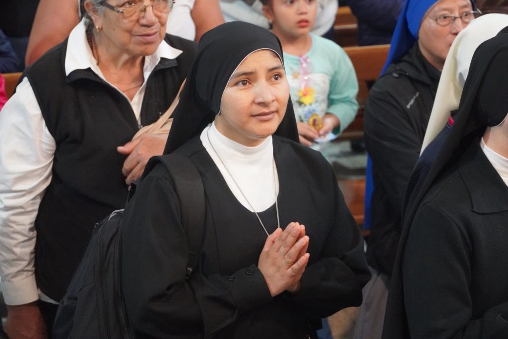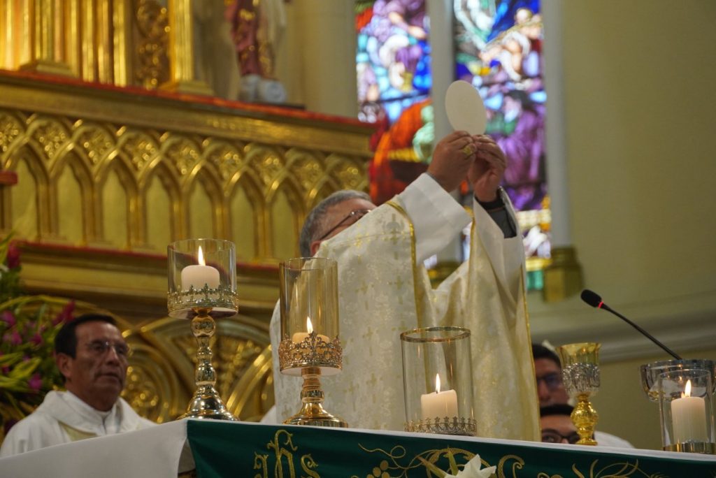 Al mediodía, se celebró la Santa Eucaristía, presidida por Monseñor Walter Heras Segarra, Obispo de la Diócesis de Loja, acompañado por el Padre Jorge Montagna, Vicario de la Vida Consagrada, junto a varios sacerdotes, seminaristas del Seminario Mayor “Reina del Cisne”, y numerosos miembros de comunidades religiosas presentes en la diócesis.