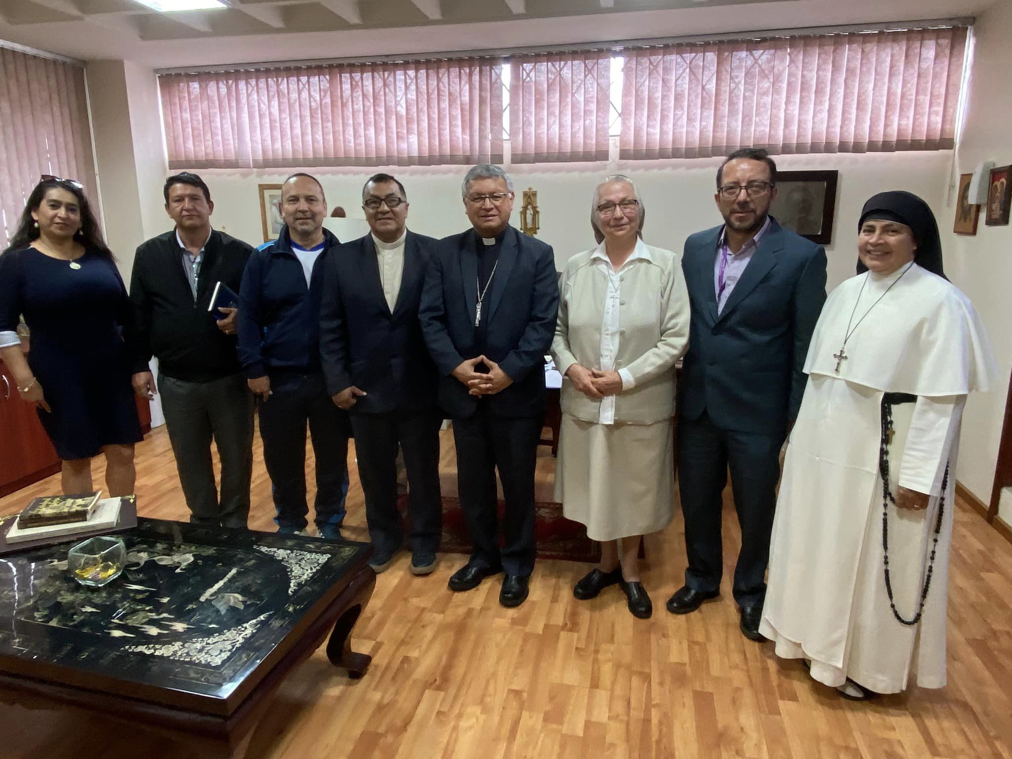 La mañana de hoy en el edificio de la Curia Diocesana, Monseñor Walter Heras; Obispo de la Diócesis de Loja se reunió con los miembros del consejo directivo de la Federación de Establecimientos de Educación Católica – Loja (FEDEC)