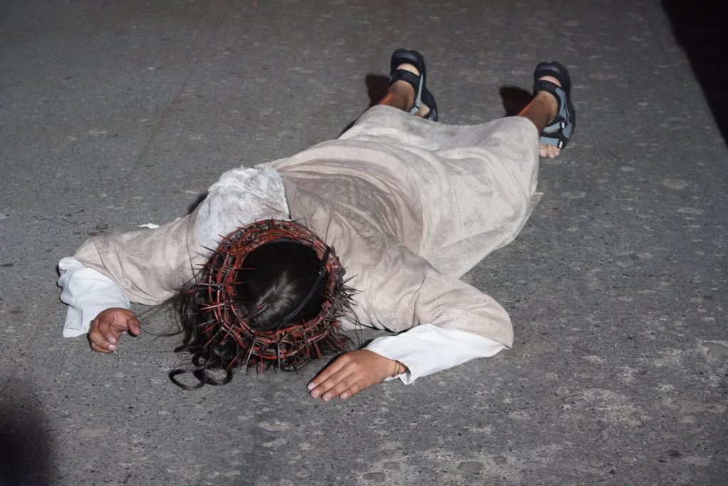 El acto litúrgico inició a las 18h00 con el sermón de las Siete Palabras, dando paso posteriormente al desarrollo del Viacrucis. Las primeras estaciones se escenificaron en la plaza de El Valle, desde donde el recorrido avanzó por las principales arterias como: Guayaquil, avenida Gran Colombia, 18 de Noviembre, Colón, Bolívar, 10 de Agosto, Bernardo Valdivieso, Santiago de las Montañas y Salvador Bustamante Celi, culminando con la representación de la crucifixión y muerte de Jesucristo.